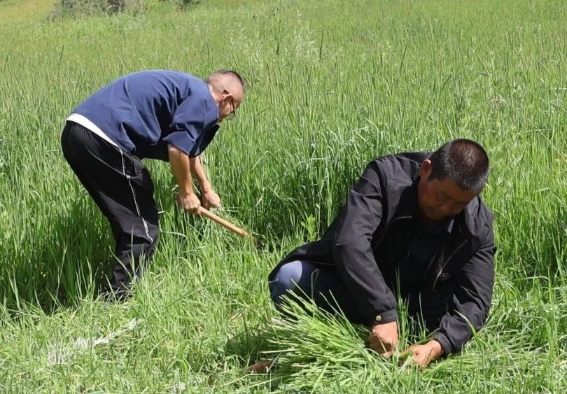 正值猫尾草收割的黄金时节,头茬猫尾草迎来开镰收割,甘肃省漳县贵清山镇的田间地头一派繁忙景象。