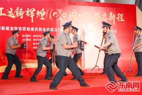 东南网4月30日讯(本网记者 施远圻 通讯员 李亮 黄我成)为献礼百年工运,赓续红色工运精神,凝聚职工奋进力量,4月28日下午,泉州市总工会直属基层工会庆祝中华全国总工会成立100周年文艺汇演暨“联创共建”活动,在泉州数字经济产业园举行。泉州市、丰泽区、洛江区总工会,市总直属基层工会干部职工代表及联创共建单位负责人等100余人齐聚一堂,以“五送”(送思想、送保障、送点子、送文化、送技术)为载体,凝聚职工挺膺担当、奋勇争先,共谱联创共建发展新篇章。