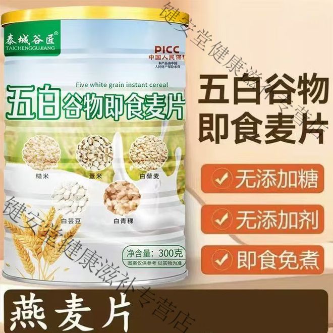 五白谷物即食麦片低脂脱脂减专用肥早餐代餐燕麦片无糖 [高纤饱腹]五白谷物即食麦片300g*8罐 罐装