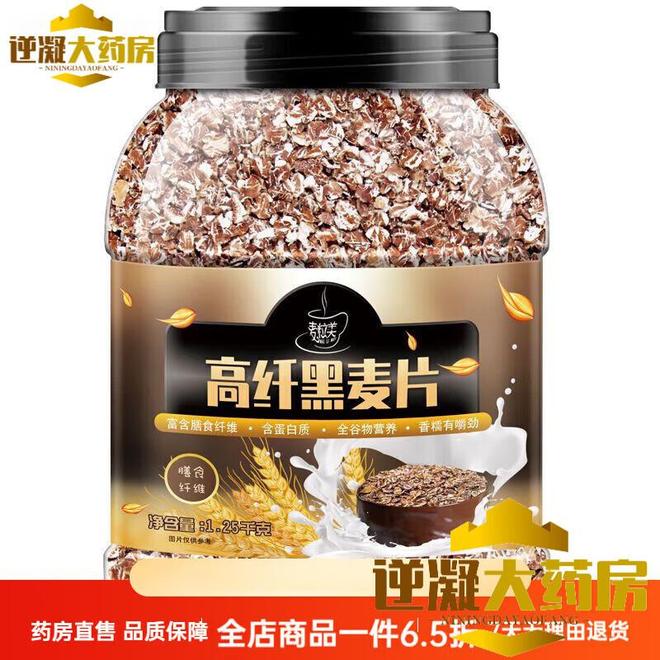 燕麦片脱脂高纤低脂黑麦片早餐冲饮即食原味燕麦片无糖精 高纤黑麦片1100g*1罐+量勺