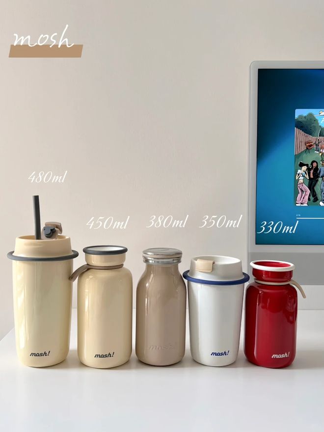 『mosh!杯子合集』绝对值得放进购物车——经典奶瓶造型可可爱爱,拿铁杯随手一拍就是ins风大片,渐变色吸管杯光看着就心情超好。