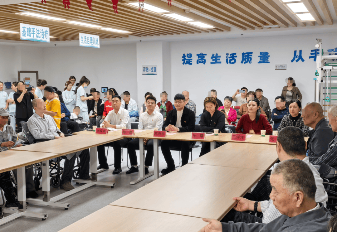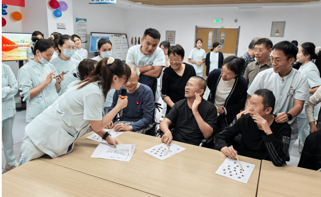 “加油!再快一点就能完成啦!” 嘉宾与康复治疗师的鼓励声、患者的欢笑声、家属的喝彩声交织在一起,不仅让患者在互动中巩固了康复成果,更拉近了跨院党员、医患之间的距离,生动践行了 “民族团结一家亲,医患同心共康复” 的良好氛围。