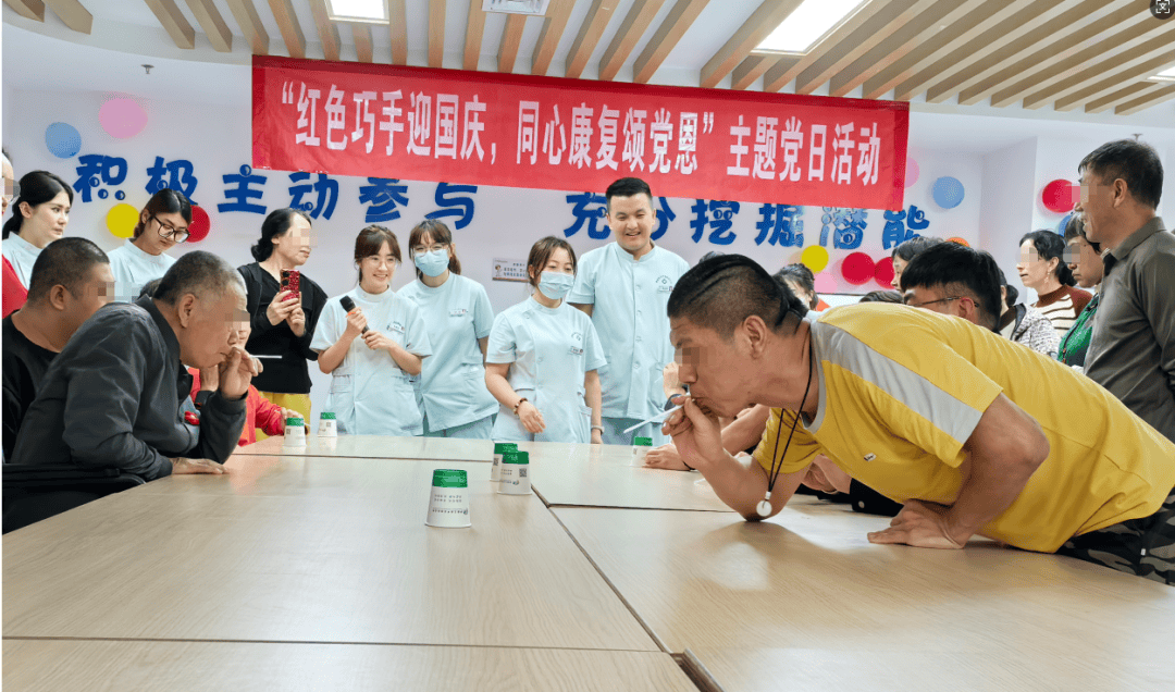 为弘扬爱国主义精神、深化党建与康复业务深度融合、凝聚医患同心力量,在国庆节和中秋节来临之际,新疆长安中医脑病医院党支部第三党小组(康复)特邀新疆尔自治区人民医院康复医学科党支部举办“红色巧手迎国庆,同心康复颂党恩”主题康复活动,以创意康复特色游戏形式,礼赞祖国华诞,书写新时代医患同心、党建共建的温暖篇章。